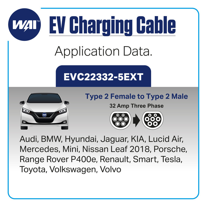 • Compatible with - Audi, BMW, Hyundai, Jaguar, KIA, Lucid Air, Mercedes, Mini, Nissan Leaf 2018, Porsche, Range Rover P400e, Renault, Smart, Tesla, Toyota, Volkswagen, Volvo