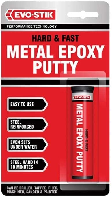 EVO-STIK Hard & Fast Metal Epoxy Putty is an easily worked, two-part epoxy resin putty that sets steel hard in just 10 minutes and can be used underwater.