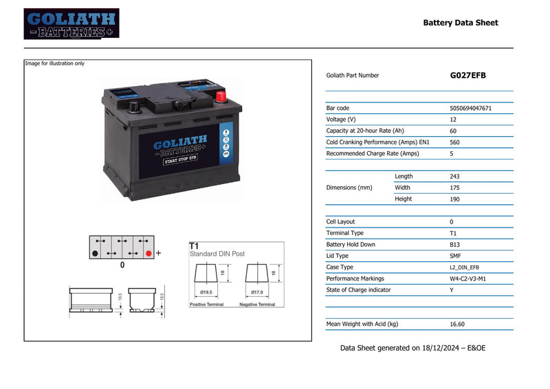 | Feature Range | G027 EFB Start Stop Plus Batteries |