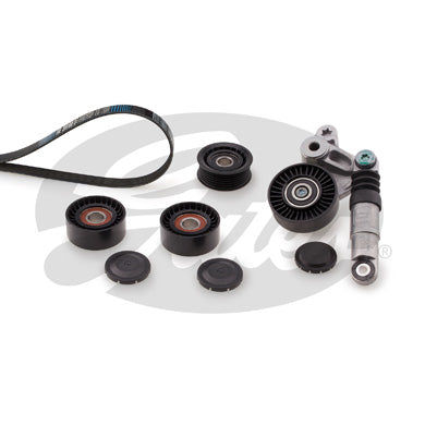 Gates Micro-V® Kits include the Micro-V® belt/s, tensioner and idler pulleys needed to overhaul the accessory belt drive system.