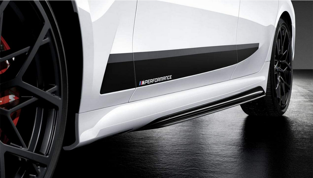 Inspiring visuals: The BMW M Performance skirt extension optically lengthens the proportions of the vehicle, lending it an even more dynamic appearance. The skirt extension is extremely light but stable and perfectly complements the vehicle design. For an extremely athletic and elegant look.