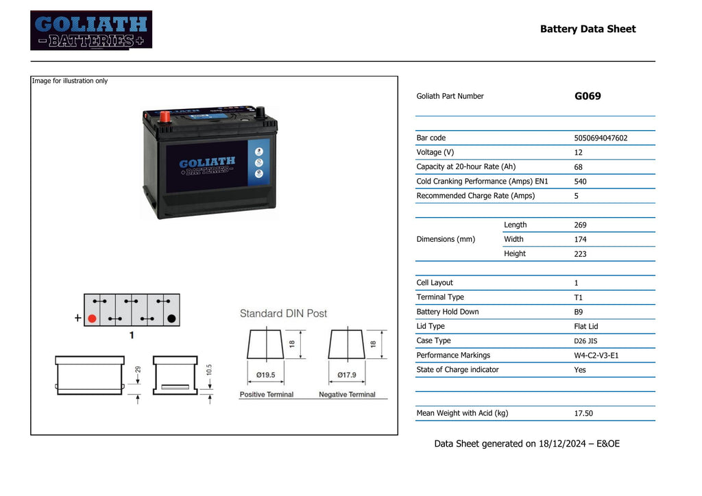 | Cold Cranking Performance (Amps) EN1 | 630 |