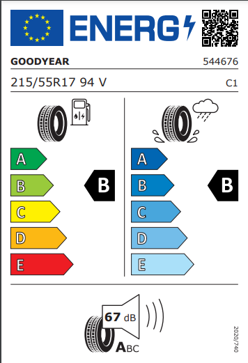 About this tyre - Size - 215/55/17 94V, Fuel Efficiency - B, Noise (dB) - 68, Wet Grip - B, Runflat - NoAs the only component on your vehicle that actually makes contact with the road surface, tyres are critical for safety when driving.How do you read the markings on a tyre?The markings on a tyre indicate its size, load index and speed rating. A typical tyre marking looks like this - 205/55 R16 W 91. What is the UK legal tyre limit?The minimum tread depth required by law in the UK is 1.6mm. This applies to the central three-quarters of the tyre’s width and its entire circumference. Many car manufacturers, however, advise changing your tyres once the tread is down to 3mm to be on the safe side. What are tyre speed ratings?A tyre speed rating is the maximum speed a particular tyre is legally approved for. The rating is represented by a letter displayed on the tyre sidewall. It will always be the last letter in the sequence.
