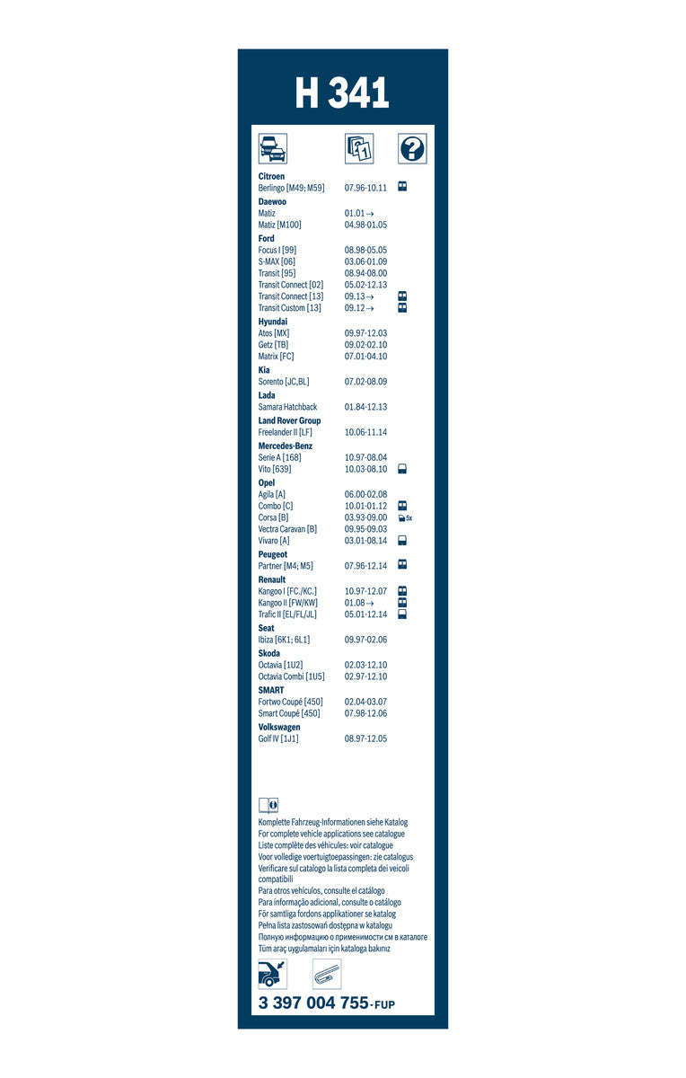 - Available with Bosch Aerotwin, plastic or conventional wiper blade technology: For a range of vehicle specific solutions