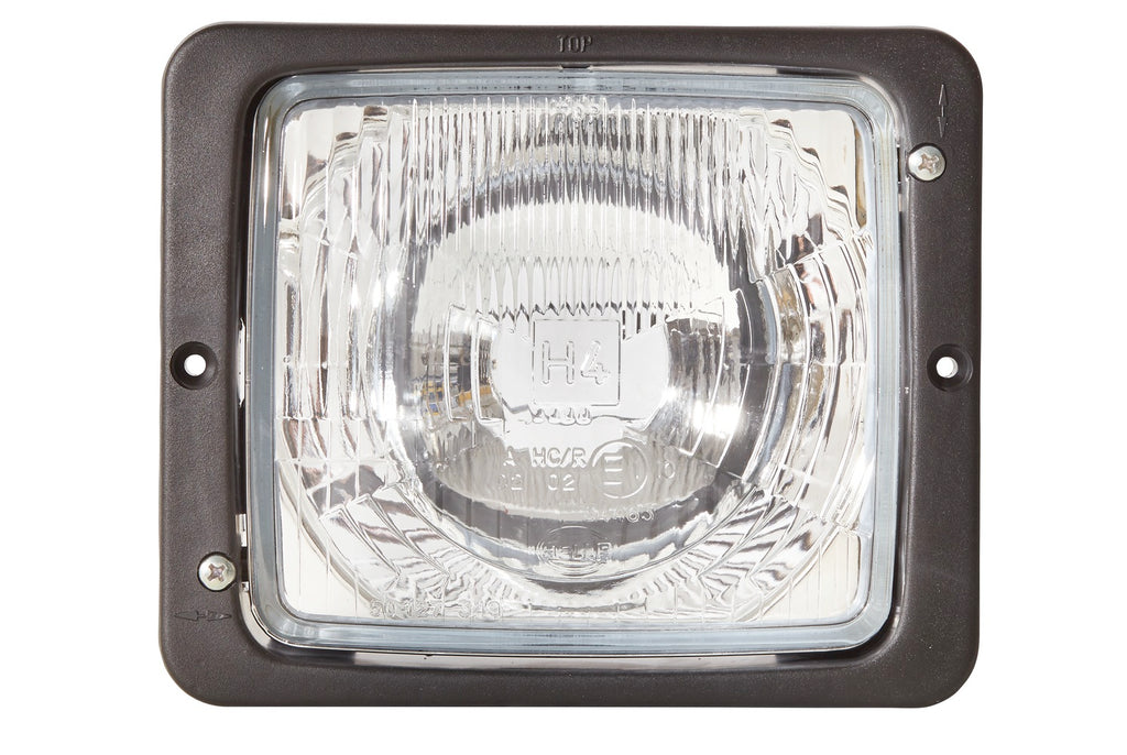 HELLA front lighting. Look ahead - with front lighting solutions from HELLA. Nothing works without powerful headlights - neither on the road nor in the field. They are the eyes of the vehicle and therefore an essential safety feature when driving and working at night.Item Attributes: Mounting Type: FittingLamp Type: T4W / H4Light Design: HalogenVoltage: 24 V / 12 VFitting Position: right / leftWidth: 173 mmHeight: 144 mmDepth: 99 mmOuter Diameter: 131 mmLight Function: with position light / with high beam / with low beamLight functions: 3Prot.type (IP Code): IP5K4KRegistration Type: ECEPlug: Blade TerminalReference number: 10Left-hand/Right-hand Traffic: for right-hand trafficHousing Colour: BlackIlluminated Area: 138 x 124 mmDiffusing Lens Material: GlassLens Colour: transparentSupplementary Article/Info 2: without bulbsSVHC: 7439-92-1; LeadAssembly by qualified personnel required!