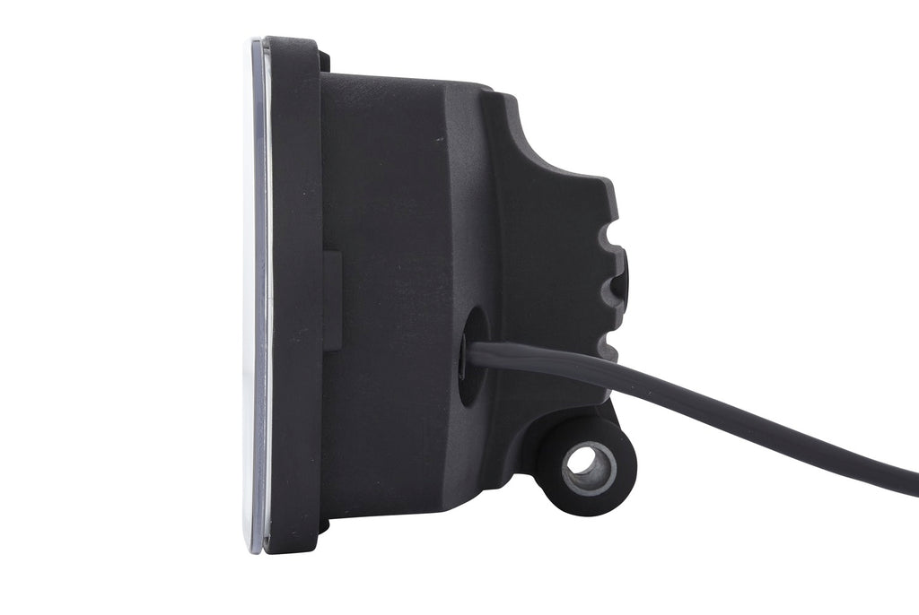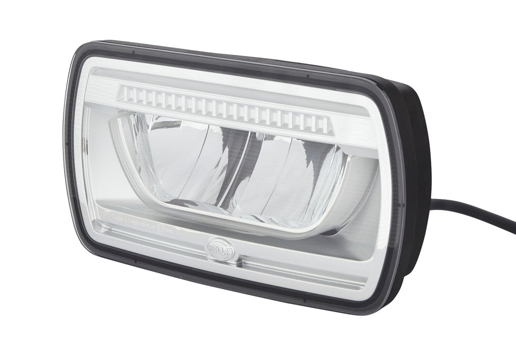 Jumbo LED - 100 % LED technology: Auxiliary high beam headlamp with state-of-the-art optics and impressive LED light pattern for individual style. Edge light technology intensifies the characteristic contours of the highly recognizable LED position light. Immediate response for attention-grabbing headlight flashing. Impact-resistant housing made of high-quality thermoplastic material. Sturdy fastening bracket made of zinc-coated sheet steel with wide adjustment range. Electronics components qualified according to automotive standard. Multi-voltage: suitable for 12 V and 24 V rated voltage. High beam with reference number 25 and with position light. ECE type-approved (ECE R149 high beam, ECE R148 position light, ECE R10 EMC). Weight 980 g (significantly lower weight than diecast aluminium housings of comparable size). Particularly energy-efficient and fuel-saving.Item Attributes: Mounting Type: mountingFastening Type: Swivelling Mounting BracketLight Design: LEDLamp Type: LEDVoltage: 24 V / 12 VFitting Position: right / leftHeight: 132 mmOverall Height: 141 mmWidth: 238 mmDepth: 113 mmFitting Depth: 23 mmLight Function: with high beam (LED) / with position light (LED)Light functions: 2Fulfils ECE norm.: R149 / R10 / R148Reference number: 25Cable: 800 mmHousing Colour: BlackLens Colour: Crystal clearShape: rectangularHousing Type: Synthetic Material HousingDiffusing Lens Type: Clear diffusing lensSupplementary Article/Info 2: without capSupplementary Article/Supplementary Info: with LEDSVHC: 7439-92-1; LeadAssembly by qualified personnel required!