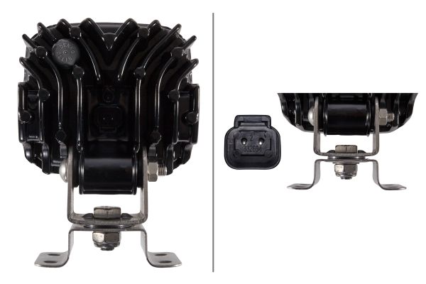 Item Attributes: Mounting Type: Bolted / mountingFastening Type: VerticalLight Design: LEDLamp Type: LEDVoltage: 24 V / 12 VHeight: 132 mmWidth: 115 mmDepth: 85 mmLight Distribution: Work light glare-freeFulfils ECE norm.: R10Plug: DEUTSCH plugProt.type (IP Code): IP6K9K / IP6K7Luminous Flux: 4400 lmColour Temperature: 6500 KNumber of LEDs: 8Power consumption: 56 WHousing Type: Aluminium HousingHousing Colour: BlackDiffusing Lens Type: Clear diffusing lensSVHC: 7439-92-1; LeadAssembly by qualified personnel required!HELLA has developed ZEROGLARE technology to bring the safety and comfort of the automotive industry to the off-highway sector. The ZEROGLARE system projects the light from the LEDs specifically onto the area in front of the vehicle creating a very sharp cut-off line. In this way the driver of the oncoming vehicle is not dazzled transferring the safety and comfort from the automotive industry to the off-highway sector.OE references: VOLVO 53134963Worklight;HELLA;Ultra Beam Gen. II;Black;24V;Zeroglare;12V;E12 0046;6500K;56W;IP6K8;IP6K9K;115mm;85mm;mounting;DEUTSCH plug;LED;20;8;7439-92-1; Lead;123mm;