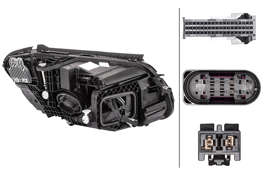 Item Attributes: Fitting Position: rightLeft-hand/Right-hand Traffic: for left-hand trafficLamp Type: LEDRegistration Type: ECELight Design: LEDLight Function: with position light (LED) / with high beam (LED) / with low beam (LED) / with daytime running light (LED) / with indicator (LED)Supplementary Article/Supplementary Info: without control unitpaired article number: 1LX 013 063-531without lettering: Mercedes-Benz / HIGH PERFORMANCESVHC: 1303-86-2; Diboron trioxide / 7439-92-1; Lead / 1317-36-8; Lead monoxide (lead oxide)Assembly by qualified personnel required!Country Specific Design: EuropeHELLA stands for competence and experience in automotive lighting and has done so for over 100 years. HELLA offers both the trade and workshops a high-quality and comprehensive range of lighting. The independent aftermarket benefits in particular from HELLA's many years of original equipment expertise - because HELLA is one of the leading suppliers in this field with an extensive range of innovative lighting products on whose quality products numerous car manufacturers worldwide place their trust. An OE know-how that we successfully transfer to the independent parts market. Look ahead - with vehicle-specific front headlights from HELLA. As a technology leader in intelligent light distributions halogen xenon and LED headlights and as a partner of renowned international car manufacturers HELLA constantly meets the highest requirements and quality standards. In practice this means the best vision through optimal light quality.OE references: MERCEDES-BENZ 205 906 59 04 ; MERCEDES-BENZ 205 906 82 05 ; MERCEDES-BENZ A 205 906 59 04; MERCEDES-BENZ A 205 906 82 05Headlight;HELLA;MB (Bbdc) C-Class (W205);1303-86-2; Diboron trioxide;ECE;with position light (LED);E1 4428;7439-92-1; Lead;with high beam (LED);1317-36-8; Lead monoxide (lead oxide);with low beam (LED);with daytime running light (LED);LED;MULTIBEAM LED;1LX 013 063-531;Mercedes-Benz;with indicator (LED);for left-hand traffic;Right;E1 4429;LED;HIGH PERFORMANCE;