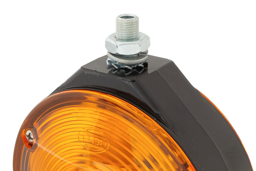 HELLA marker lights. With the number plate, clearance, position and indicator lights from HELLA, you ensure that the vehicle is optimally visible to all road users even in the dark and in difficult visibility conditions. A real plus for safety in any operational situation, whether on the road or in the field. For these luminaires, too, we rely on the highest quality and the use of efficient technologies. HELLA marker lights are also characterised by outstanding quality in terms of workmanship and stability - the long service life proves it. Don't leave safety to chance - put your trust in HELLA's marker lights.Item Attributes: Mounting Type: mountingFitting Position: Lateral Mounting / left / lateral installation / right / FrontSupplementary Article/Info 2: without bulbs / without pipeSupplementary Article/Supplementary Info: with bulb holderRegistration Type: ECEVoltage: 24 V / 12 VLight functions: 1Housing Colour: BlackLamp Type: P21WLight Design: HalogenLight Function: with indicatorLens Colour: YellowBolt/Nut Version: Banjo BoltAssembly by qualified personnel required!