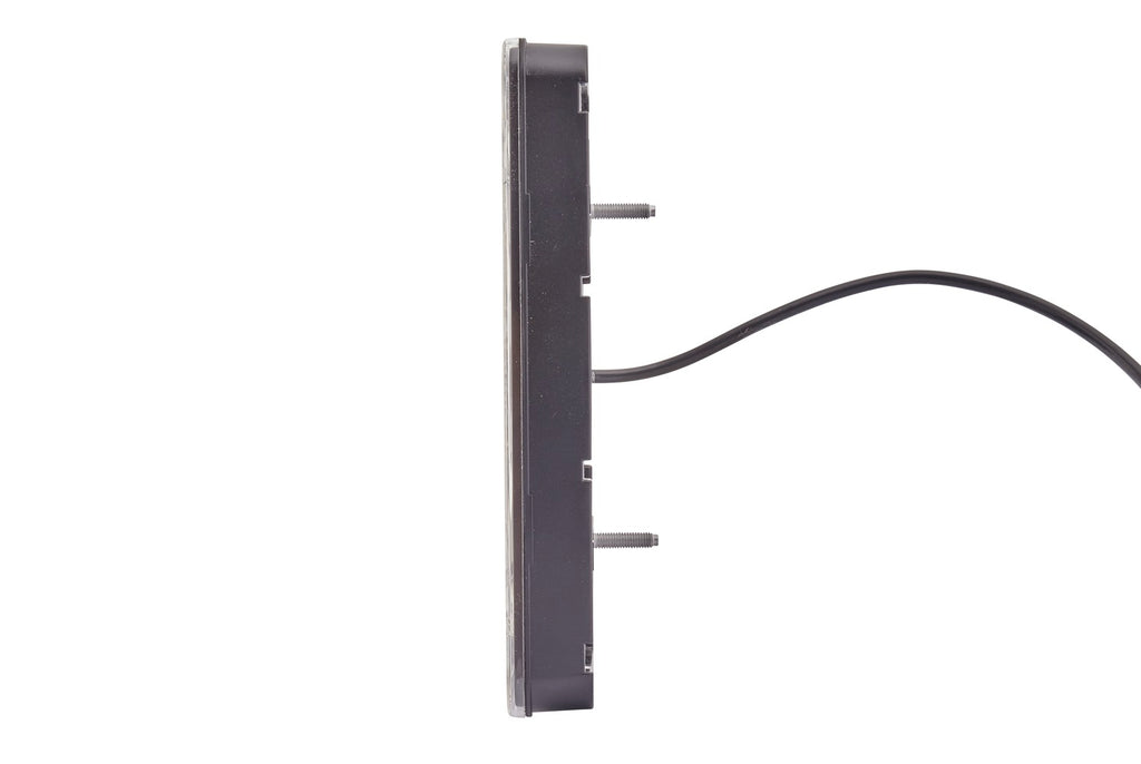 Item Attributes: Mounting Type: Bolted / mountingLight Design: LEDLamp Type: LEDVoltage: 12 VFitting Position: left / rightHeight: 40 mmWidth: 130 mmLength: 300 mmLight Function: with reflector / with rear fog light / with taillight / with stop light / with indicator / with reverse lightLight functions: 6Registration Type: ECE / ADR/GGVSNumber of LEDs: 6 / 12Cable: 500 mmHousing Colour: BlackLens Colour: Crystal clearLED colour: White / Yellow / RedSupplementary Article/Info 2: without indicator failure controlQuantity: 1SVHC: 7439-92-1; Lead / 1303-96-4; Disodium tetraborate anhydrousAssembly by qualified personnel required!„COLUNA“ full LED combination rear lamp with 5 light functions for 12 V and 24 V towing vehicles and trailers. All light functions of the full LED combination rear lamp (tail light stop light direction indicator rear fog lamp and backup lamp) exclusively feature LED technology. The tail light is produced by a ground-breaking patent-registered flat LED light guide in combination with the reflex reflector. And this light guide succeeds in producing illumination which is especially homogeneous. As a result the tail light function with its large surface area of around 145 cm² is exceptionally visible in the dark and thus enhances road safety. 12 V and 24 V variants of this extremely flat surface-mounted full LED light are available for towing vehicles and trailers. A range of different applications on the vehicle are possible using EasyConn or AMP connectors and the front or rear fixing options.Combination Rearlight;HELLA;Coluna;with reverse light;Red;ADR/ GGVS Checked;mounting;Yellow;without indicator failure control;with taillight;Black;LED;E24 5880;with indicator;6;1303-96-4; Disodium tetraborate anhydrous;Left;ECE;White;7439-92-1; Lead;12V;6;with rear fog light;Right;12;for tractor;E17 0071;500mm;White;with stop light;with reflector;LED;E24 5879;