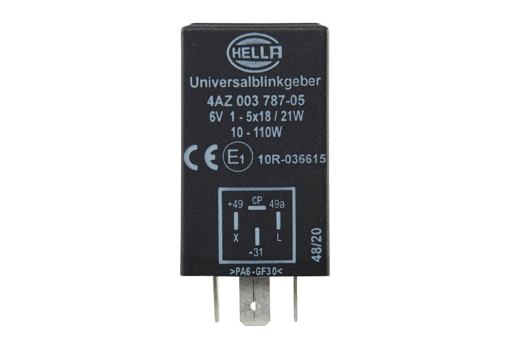Item Attributes: Mounting Type: mountingSwitching Capacity: 1-8 x 18/21 W / with centre hole WNumber of pins: 4 -pin connectorVoltage: 24 VSupplementary Article/Supplementary Info: with holderOperating Mode: ElectronicSVHC: 7439-92-1; Lead / 1317-36-8; Lead monoxide (lead oxide)Assembly by qualified personnel required!The HELLA electronics range includes a variety of flasher units in different versions for different vehicle models and requirements. All our products convince through their reliable function and high quality. It goes without saying that our flasher units meet all legal requirements such as those relating to indicator failure detection in accordance with ECE regulations. You can also rely on HELLA's many years of electronics expertise when it comes to flasher units!OE references: AHLMANN 2301347A.; AMMANN 4-5358170077; BARKAS ITM063818; CATERPILLAR 7X-9125; DAF 028 8326; DOLL 7086805; DOLL 7086905; GOLDHOFER 400239; HAKO 90-37956-1; IVECO 4173 0537; JUNGHEINRICH 440075513; JUNGHEINRICH 51004920; KÄSSBOHRER 7.371.091.000.0; MAFI 0005790550; MAN 82.25310.0001; NEOPLAN 1102.550.0; O&K 8302874; PAUS 548472; ROSENBAUER 022746; STILL 0009732522; STILL 002804; STILL 523626; VOLVO 3 093 003; ZIEGLER 158154Flasher Unit;HELLA;with cable;mounting;7439-92-1; Lead;with holder;1317-36-8; Lead monoxide (lead oxide);24V;1-8 x 18/21W;4-pin connector;Electronic;with centre hole;