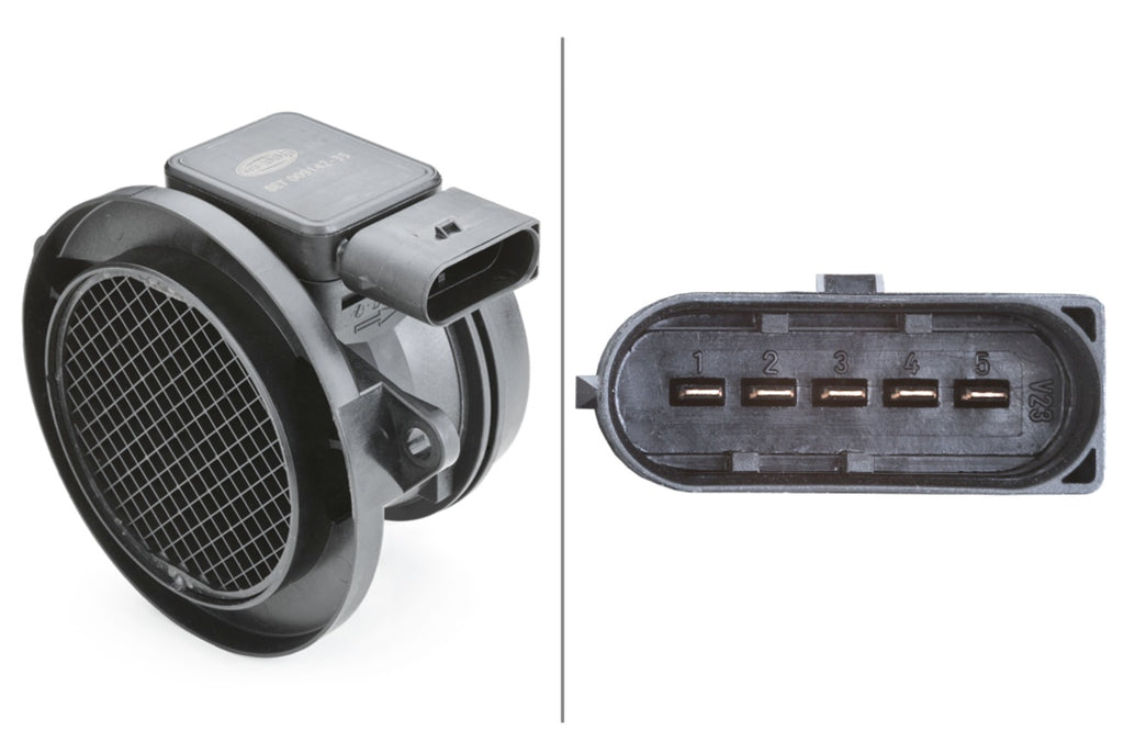 Item Attributes: Mounting Type: BoltedNumber of pins: 5 -pin connectorAssembly by qualified personnel required!The proportion of electronics in vehicles has increased continuously in recent years. A development in which HELLA has long played a special role as an innovation leader in the field of automotive original equipment. The independent aftermarket also benefits from this long-standing original equipment expertise with the successful transfer of its OE know-how. HELLA mass airflow sensors for example meet the highest standards of quality and functionality. Our range includes mass airflow meters for numerous vehicle models from leading manufacturers. HELLA mass airflow meters are characterised by their high measuring precision and consistently high manufacturing quality for a long service life.OE references: ALFA ROMEO 1610874680; ALFA ROMEO 9650010780; BMW 13 62 7 794 972; BMW 7 794 972; CITROËN 1920.GV; FIAT 1610874680; FIAT 71795063; FIAT 9650010780; FORD 1 232 096; FORD 1 255 117; FORD 3M5A12B579BA; FORD 3M5A12B579BB; LANCIA 1610874680; LANCIA 9650010780; MAZDA Y601 13 215; MINI 13 62 7 794 972; MINI 7 794 972; PEUGEOT 1920.GV; SUZUKI 13800-69K00; VOLVO 30622124Air Mass Sensor;HELLA;Bolted;5;