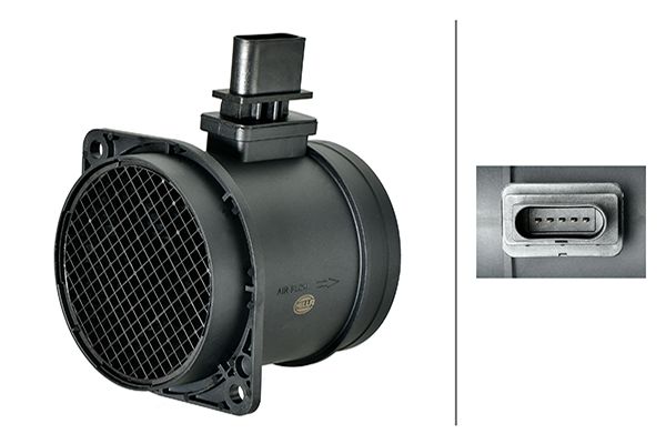 HELLA 8ET 358 166-551 Mass Air Flow Sensor - 5-pin connector - Pipe-neck