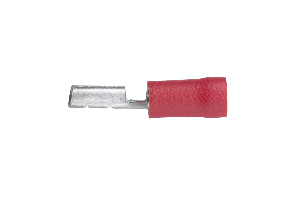 Item Attributes: Supplementary Article/Supplementary Info: with fork endfrom: 1.5 mm²to: 2.5 mm²Colour: BluePlug: Slit and Tongue ConnectorBore Ø: 5.3 mmAssembly by qualified personnel required!Insulated crimp connectors are crimped at the coloured end with an appropriate tool to make a secure firm contact with the cable. The insulation material is either PVC (max. temperature rating of 80°C) or nylon (max. 105°C). The insulating sleeve has a special "easy-entry" funnel shape to ensure better insertion of the cable. Identification colour red: Crimp connector for cable cross-section 0.5 - 1.0 mm². Identification colour blue: Crimp connector for cable cross-section 1.5 - 2.5 mm². Identification colour yellow: Crimp connector for cable cross-section 4.0 - 6.0 mm².OE references: REISCH 5009573Cable Connector;HELLA;M5;15mm²;with fork end;Slit and Tongue Connector;25mm²;Blue;