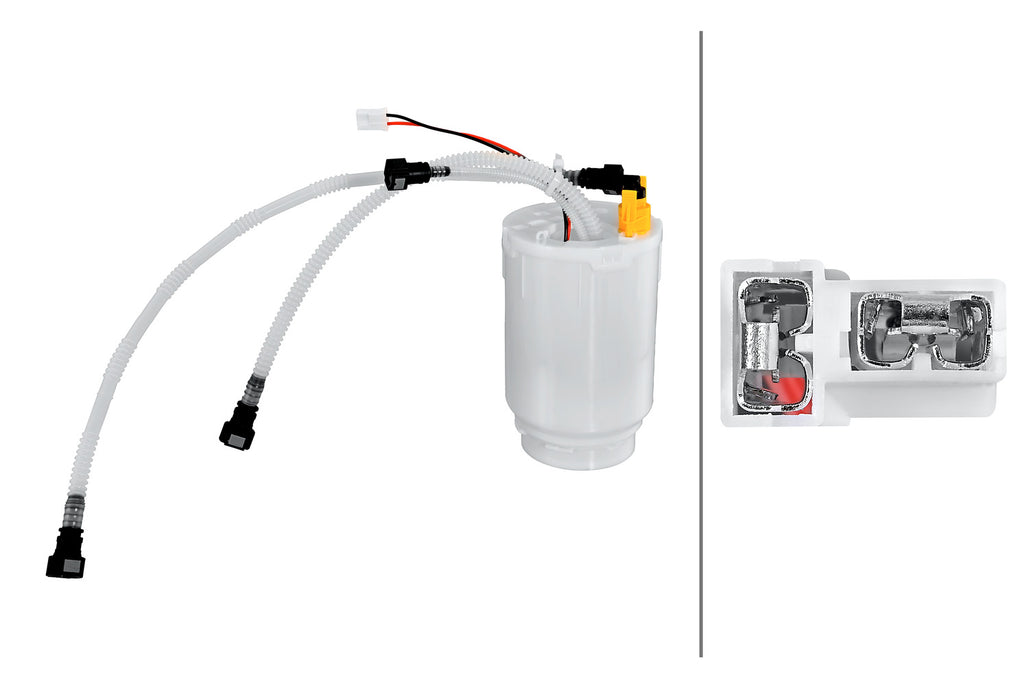 The proportion of electronics in vehicles has increased continuously in recent years. A development in which HELLA has long played a special role as an innovation leader in the field of automotive original equipment. The independent aftermarket also benefits from this long-standing original equipment expertise with the successful transfer of its OE know-how. Fuel pumps have the important task of ensuring the supply of fuel to the engine under all conditions. HELLA fuel pumps are located inside the fuel tank, are electrically driven and designed for easy installation.