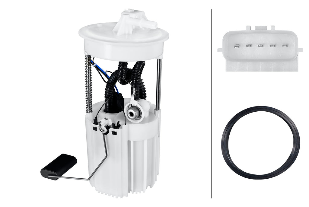 The proportion of electronics in vehicles has increased continuously in recent years. A development in which HELLA has long played a special role as an innovation leader in the field of automotive original equipment. The independent aftermarket also benefits from this long-standing original equipment expertise with the successful transfer of its OE know-how. Fuel pumps have the important task of ensuring the supply of fuel to the engine under all conditions. HELLA fuel pumps are located inside the fuel tank, are electrically driven and designed for easy installation.Item Attributes: Operating Mode: ElectricNumber of pins: 5 -pin connectorSupplementary Article/Supplementary Info: with seal / with fuel sender unitFuel Type: PetrolAssembly by qualified personnel required!