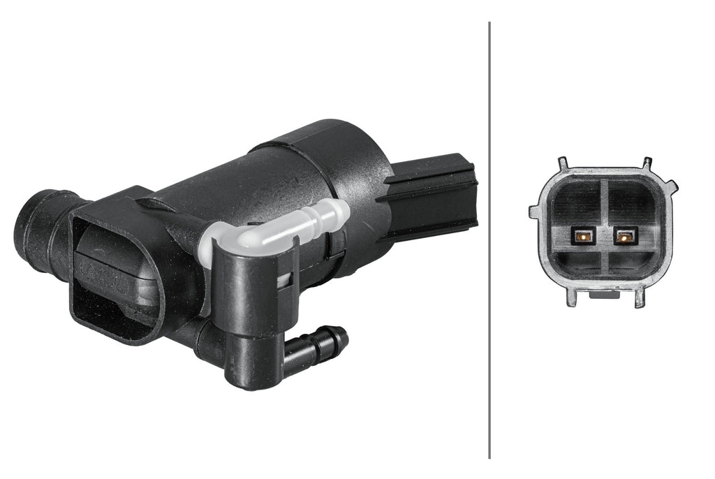 Item Attributes: Operating Mode: ElectricVoltage: 12 VNumber of pins: 2 -pin connectorAssembly by qualified personnel required!The proportion of electronics in vehicles has increased continuously in recent years. A development in which HELLA has long played a special role as an innovation leader in the field of automotive original equipment. The independent aftermarket also benefits from this long-standing original equipment expertise with the successful transfer of its OE know-how. HELLA washer pumps offer consistently high OE quality and ensure fast reliable cleaning of the windscreen or headlamp in poor visibility. Thanks to its special know-how and high quality standards HELLA is a leader in the segment of windscreen and headlight cleaning systems.OE references: CITROËN/PEUGEOT 6434.A8Water Pump window cleaning;HELLA;2;12V;Electric;