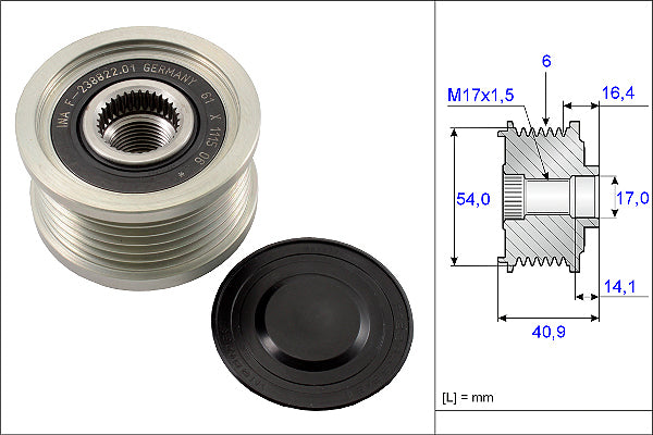 The rotational movement of the crankshaft in an internal combustion engine is not uniform. Why?: The four-stroke principle first brakes the crankshaft and then accelerates it again, causing vibration. This rotational irregularity is transferred to the FEAD system, causing increased load on all associated components. To protect the system from this vibration, INA created the Overrunning Alternator Pulley (OAP). This transmits the power of the crankshaft in just one direction, calming the belt drive as a result. It is now a common sight on the alternator fitted to many complex belt systems.A worn OAP can cause belt wobble and noise, which affects the whole FEAD system. Installing a genuine INA replacement OAP or Overrunning Alternator Decoupler (OAD) ensures maximum reliability and durability.If the OAP is diagnosed as worn and needs replacing, Schaeffler engineers recommend the replacement of the entire system at the same time, using the appropriate INA FEAD KIT.