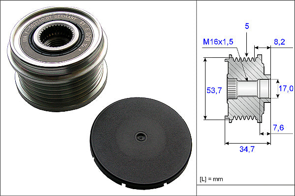 The rotational movement of the crankshaft in an internal combustion engine is not uniform. Why?: The four-stroke principle first brakes the crankshaft and then accelerates it again, causing vibration. This rotational irregularity is transferred to the FEAD system, causing increased load on all associated components. To protect the system from this vibration, INA created the Overrunning Alternator Pulley (OAP). This transmits the power of the crankshaft in just one direction, calming the belt drive as a result. It is now a common sight on the alternator fitted to many complex belt systems.A worn OAP can cause belt wobble and noise, which affects the whole FEAD system. Installing a genuine INA replacement OAP or Overrunning Alternator Decoupler (OAD) ensures maximum reliability and durability.If the OAP is diagnosed as worn and needs replacing, Schaeffler engineers recommend the replacement of the entire system at the same time, using the appropriate INA FEAD KIT.