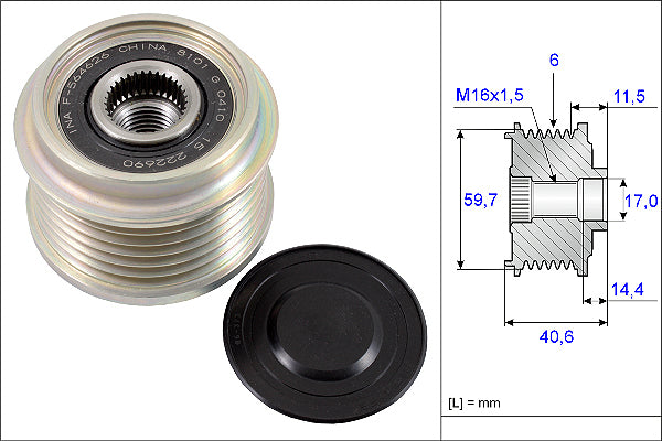 The rotational movement of the crankshaft in an internal combustion engine is not uniform. Why?: The four-stroke principle first brakes the crankshaft and then accelerates it again, causing vibration. This rotational irregularity is transferred to the FEAD system, causing increased load on all associated components. To protect the system from this vibration, INA created the Overrunning Alternator Pulley (OAP). This transmits the power of the crankshaft in just one direction, calming the belt drive as a result. It is now a common sight on the alternator fitted to many complex belt systems.A worn OAP can cause belt wobble and noise, which affects the whole FEAD system. Installing a genuine INA replacement OAP or Overrunning Alternator Decoupler (OAD) ensures maximum reliability and durability.If the OAP is diagnosed as worn and needs replacing, Schaeffler engineers recommend the replacement of the entire system at the same time, using the appropriate INA FEAD KIT.