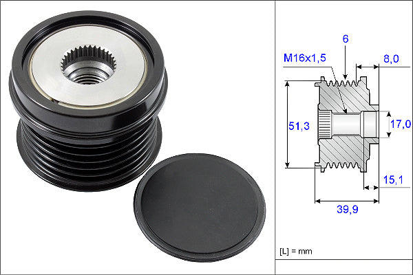 The rotational movement of the crankshaft in an internal combustion engine is not uniform. Why?: The four-stroke principle first brakes the crankshaft and then accelerates it again, causing vibration. This rotational irregularity is transferred to the FEAD system, causing increased load on all associated components. To protect the system from this vibration, INA created the Overrunning Alternator Pulley (OAP). This transmits the power of the crankshaft in just one direction, calming the belt drive as a result. It is now a common sight on the alternator fitted to many complex belt systems.A worn OAP can cause belt wobble and noise, which affects the whole FEAD system. Installing a genuine INA replacement OAP or Overrunning Alternator Decoupler (OAD) ensures maximum reliability and durability.If the OAP is diagnosed as worn and needs replacing, Schaeffler engineers recommend the replacement of the entire system at the same time, using the appropriate INA FEAD KIT.