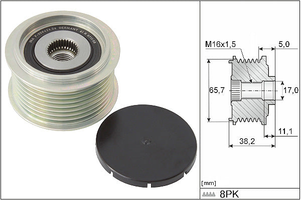 The rotational movement of the crankshaft in an internal combustion engine is not uniform. Why?: The four-stroke principle first brakes the crankshaft and then accelerates it again, causing vibration. This rotational irregularity is transferred to the FEAD system, causing increased load on all associated components. To protect the system from this vibration, INA created the Overrunning Alternator Pulley (OAP). This transmits the power of the crankshaft in just one direction, calming the belt drive as a result. It is now a common sight on the alternator fitted to many complex belt systems.A worn OAP can cause belt wobble and noise, which affects the whole FEAD system. Installing a genuine INA replacement OAP or Overrunning Alternator Decoupler (OAD) ensures maximum reliability and durability.If the OAP is diagnosed as worn and needs replacing, Schaeffler engineers recommend the replacement of the entire system at the same time, using the appropriate INA FEAD KIT.