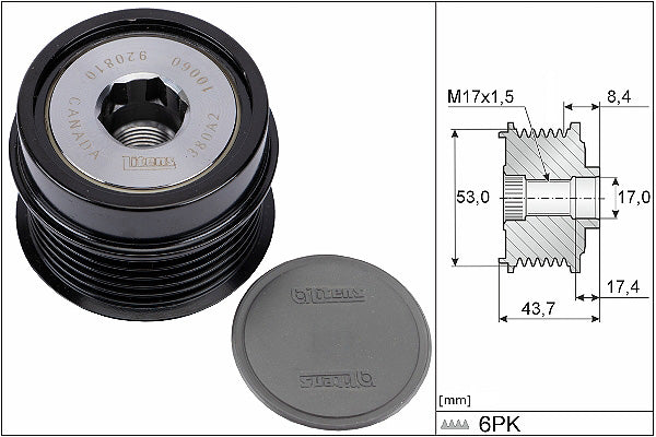 The rotational movement of the crankshaft in an internal combustion engine is not uniform. Why?: The four-stroke principle first brakes the crankshaft and then accelerates it again, causing vibration. This rotational irregularity is transferred to the FEAD system, causing increased load on all associated components. To protect the system from this vibration, INA created the Overrunning Alternator Pulley (OAP). This transmits the power of the crankshaft in just one direction, calming the belt drive as a result. It is now a common sight on the alternator fitted to many complex belt systems.A worn OAP can cause belt wobble and noise, which affects the whole FEAD system. Installing a genuine INA replacement OAP or Overrunning Alternator Decoupler (OAD) ensures maximum reliability and durability.If the OAP is diagnosed as worn and needs replacing, Schaeffler engineers recommend the replacement of the entire system at the same time, using the appropriate INA FEAD KIT.