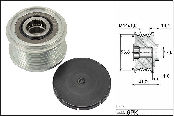 The rotational movement of the crankshaft in an internal combustion engine is not uniform. Why?: The four-stroke principle first brakes the crankshaft and then accelerates it again, causing vibration. This rotational irregularity is transferred to the FEAD system, causing increased load on all associated components. To protect the system from this vibration, INA created the Overrunning Alternator Pulley (OAP). This transmits the power of the crankshaft in just one direction, calming the belt drive as a result. It is now a common sight on the alternator fitted to many complex belt systems.A worn OAP can cause belt wobble and noise, which affects the whole FEAD system. Installing a genuine INA replacement OAP or Overrunning Alternator Decoupler (OAD) ensures maximum reliability and durability.If the OAP is diagnosed as worn and needs replacing, Schaeffler engineers recommend the replacement of the entire system at the same time, using the appropriate INA FEAD KIT.