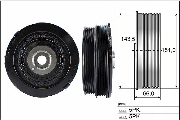 Outer diameter - 151.50 mmOuter diameter 1 - 143.50 mmWidth - 66.00 mmVibration - with vibration damper