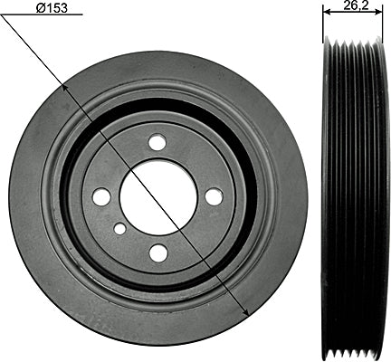 Outer diameter - 150.00 mmWidth - 26.00 mmNumber of grooves - 6Vibration - with vibration damper