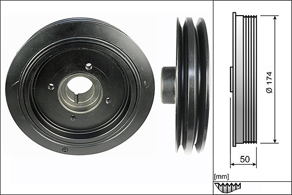 Outer diameter - 173.00 mmOuter diameter 1 - 173.00 mmWidth - 49.50 mmVibration - with vibration damper