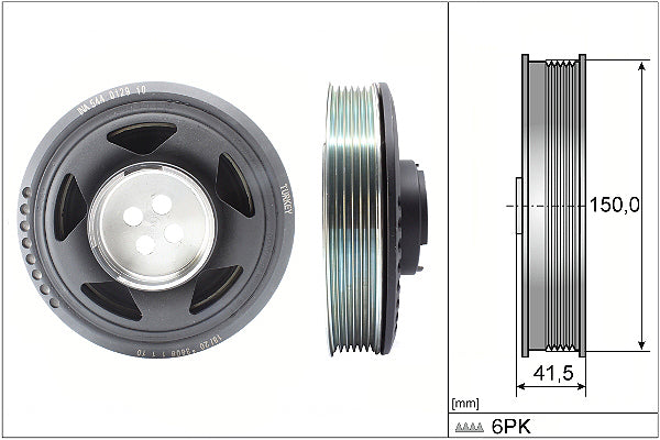 Outer diameter - 150 mmWidth - 41.5 mmNumber of grooves - 6Vibration - with vibration damper