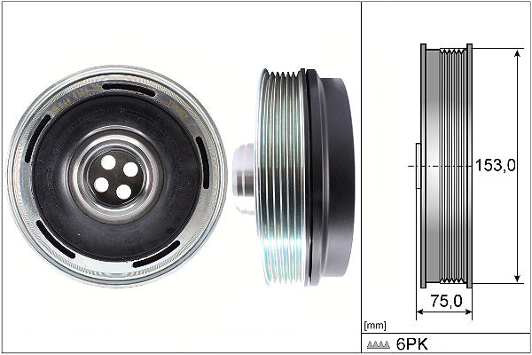 Outer diameter - 153.00 mmWidth - 75.00 mmNumber of grooves - 6Vibration - with vibration damper