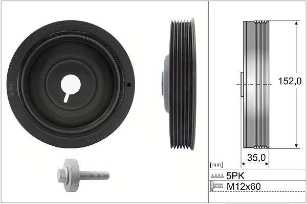 Ø - 152.00 mmWidth - 35.00 mmNumber of grooves - 5Vibration - with vibration damperSupplementary Article/Supplementary Info - with add-on material