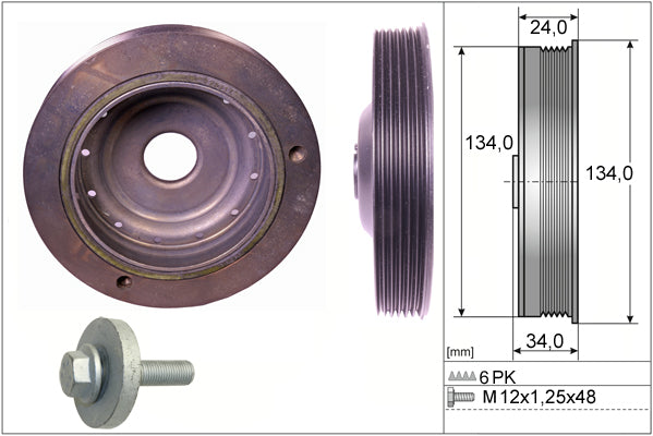 Ø - 134.00 mmWidth - 34.00 mmNumber of grooves - 6Vibration - with vibration damperSupplementary Article/Supplementary Info - with add-on material