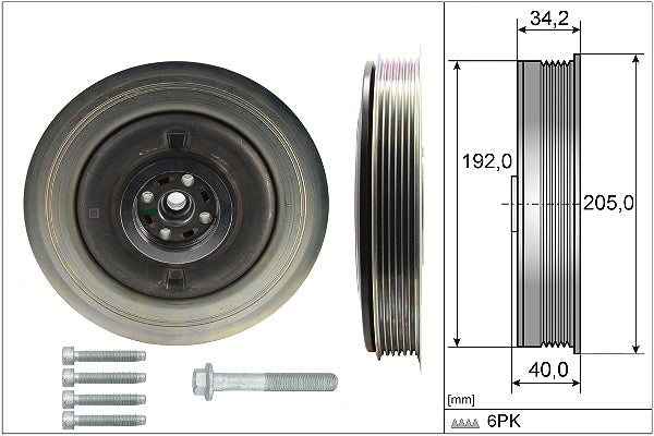 Ø - 205.00 mmWidth - 40.00 mmNumber of grooves - 6Vibration - with vibration damper