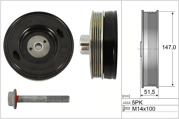 Ø - 147.00 mmWidth - 51.50 mmNumber of grooves - 5
