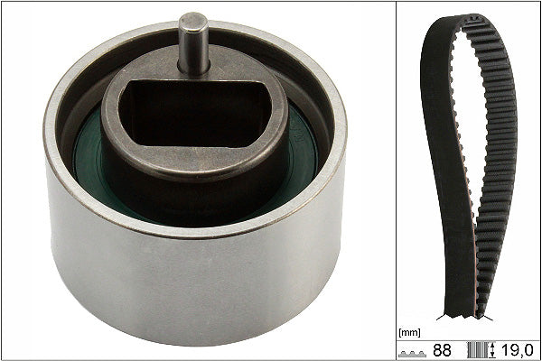 The timing belt system controls the combustion process and the the camshaft drive operation, which opens and closes the valves at the right time. To do this consistently requires accurate tensioning throughout the whole timing belt route, so that all tensioner and deflection pulleys operate in perfect synchronisation. The requirements placed on drive components has continuously increased in the last few years. Higher loads in the engine compartment combined with a longer life expectancy means that garages have to replace all of the belt drive system components at the same time, in line with the recommended change point specified by the vehicle manufacturer.As a technical partner and supplier of complete drive systems to the world's leading vehicle producers, INA offers the widest range of OE content Timing Belt KITs available to the UK aftermarket.INA KITs also contain everything needed for a professional belt system service, right down to the last nut, bolt and washer. If the application features a timing belt driven water pump, INA also offers a comprehensive range of Timing Belt KIT+ Water Pump references to suit.
