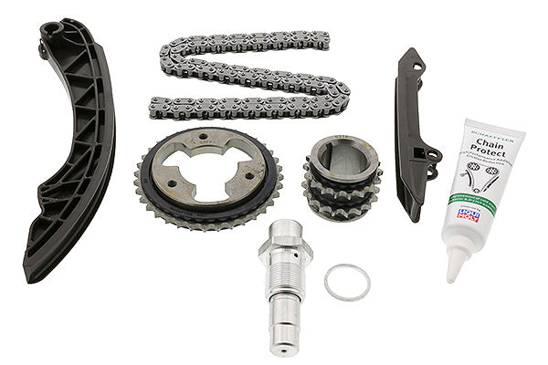 The timing chain transmits the rotational movement of the crankshaft to the camshaft to ensure perfect engine synchronisation. Over time the timing chain can 'stretch' so that it no longer aligns correctly to the sprockets and begins to slip.Simply replacing the chain is not the answer! To avoid follow-on damage and further expense, Schaeffler engineers advise installing a complete INA Timing Chain KIT, which contains all the precision-tuned parts needed for a professional repair. Replacing all system components at the same time results in a reliable and durable repair, helping to avoid follow-on issues.To ensure optimum wear resistance, INA Timing Chain KITs include our exclusive timing chain additive, Chain Protect, produced by Liqui-Moly.