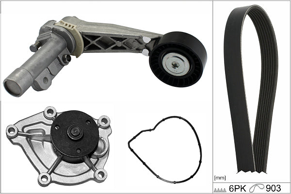 The timing belt system controls the combustion process and the the camshaft drive operation, which opens and closes the valves at the right time. To do this consistently requires accurate tensioning throughout the whole timing belt route, so that all tensioner and deflection pulleys operate in perfect synchronisation. The requirements placed on drive components has continuously increased in the last few years. Higher loads in the engine compartment combined with a longer life expectancy means that garages have to replace all of the belt drive system components at the same time, in line with the recommended change point specified by the vehicle manufacturer.As a technical partner and supplier of complete drive systems to the world's leading vehicle producers, INA offers the widest range of OE content Timing Belt KITs available to the UK aftermarket.INA KITs also contain everything needed for a professional belt system service, right down to the last nut, bolt and washer. If the application features a timing belt driven water pump, INA also offers a comprehensive range of Timing Belt KIT+ Water Pump references to suit.