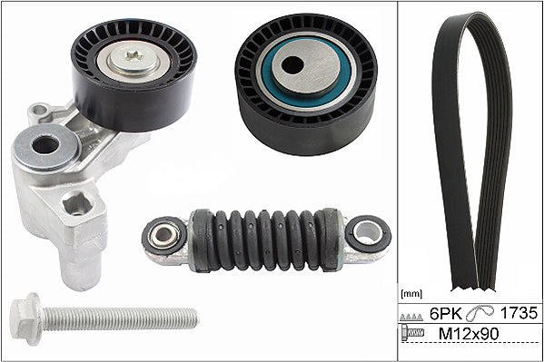 The timing belt system controls the combustion process and the the camshaft drive operation, which opens and closes the valves at the right time. To do this consistently requires accurate tensioning throughout the whole timing belt route, so that all tensioner and deflection pulleys operate in perfect synchronisation. The requirements placed on drive components has continuously increased in the last few years. Higher loads in the engine compartment combined with a longer life expectancy means that garages have to replace all of the belt drive system components at the same time, in line with the recommended change point specified by the vehicle manufacturer.As a technical partner and supplier of complete drive systems to the world's leading vehicle producers, INA offers the widest range of OE content Timing Belt KITs available to the UK aftermarket.INA KITs also contain everything needed for a professional belt system service, right down to the last nut, bolt and washer. If the application features a timing belt driven water pump, INA also offers a comprehensive range of Timing Belt KIT+ Water Pump references to suit.