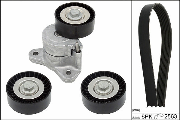 The timing belt system controls the combustion process and the the camshaft drive operation, which opens and closes the valves at the right time. To do this consistently requires accurate tensioning throughout the whole timing belt route, so that all tensioner and deflection pulleys operate in perfect synchronisation. The requirements placed on drive components has continuously increased in the last few years. Higher loads in the engine compartment combined with a longer life expectancy means that garages have to replace all of the belt drive system components at the same time, in line with the recommended change point specified by the vehicle manufacturer.As a technical partner and supplier of complete drive systems to the world's leading vehicle producers, INA offers the widest range of OE content Timing Belt KITs available to the UK aftermarket.INA KITs also contain everything needed for a professional belt system service, right down to the last nut, bolt and washer. If the application features a timing belt driven water pump, INA also offers a comprehensive range of Timing Belt KIT+ Water Pump references to suit.