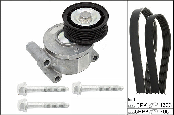 The timing belt system controls the combustion process and the the camshaft drive operation, which opens and closes the valves at the right time. To do this consistently requires accurate tensioning throughout the whole timing belt route, so that all tensioner and deflection pulleys operate in perfect synchronisation. The requirements placed on drive components has continuously increased in the last few years. Higher loads in the engine compartment combined with a longer life expectancy means that garages have to replace all of the belt drive system components at the same time, in line with the recommended change point specified by the vehicle manufacturer.As a technical partner and supplier of complete drive systems to the world's leading vehicle producers, INA offers the widest range of OE content Timing Belt KITs available to the UK aftermarket.INA KITs also contain everything needed for a professional belt system service, right down to the last nut, bolt and washer. If the application features a timing belt driven water pump, INA also offers a comprehensive range of Timing Belt KIT+ Water Pump references to suit.