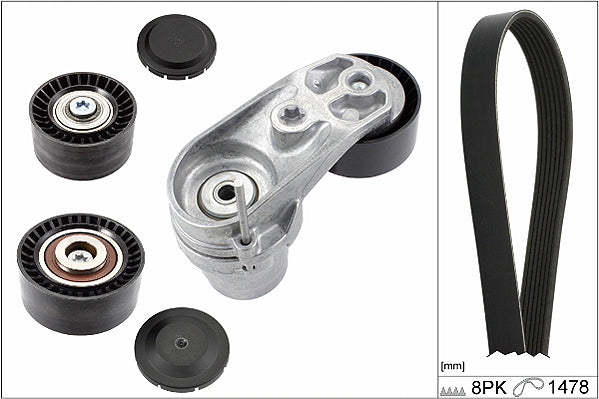 The timing belt system controls the combustion process and the the camshaft drive operation, which opens and closes the valves at the right time. To do this consistently requires accurate tensioning throughout the whole timing belt route, so that all tensioner and deflection pulleys operate in perfect synchronisation. The requirements placed on drive components has continuously increased in the last few years. Higher loads in the engine compartment combined with a longer life expectancy means that garages have to replace all of the belt drive system components at the same time, in line with the recommended change point specified by the vehicle manufacturer.As a technical partner and supplier of complete drive systems to the world's leading vehicle producers, INA offers the widest range of OE content Timing Belt KITs available to the UK aftermarket.INA KITs also contain everything needed for a professional belt system service, right down to the last nut, bolt and washer. If the application features a timing belt driven water pump, INA also offers a comprehensive range of Timing Belt KIT+ Water Pump references to suit.
