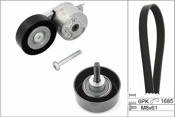The timing belt system controls the combustion process and the the camshaft drive operation, which opens and closes the valves at the right time. To do this consistently requires accurate tensioning throughout the whole timing belt route, so that all tensioner and deflection pulleys operate in perfect synchronisation. The requirements placed on drive components has continuously increased in the last few years. Higher loads in the engine compartment combined with a longer life expectancy means that garages have to replace all of the belt drive system components at the same time, in line with the recommended change point specified by the vehicle manufacturer.As a technical partner and supplier of complete drive systems to the world's leading vehicle producers, INA offers the widest range of OE content Timing Belt KITs available to the UK aftermarket.INA KITs also contain everything needed for a professional belt system service, right down to the last nut, bolt and washer. If the application features a timing belt driven water pump, INA also offers a comprehensive range of Timing Belt KIT+ Water Pump references to suit.