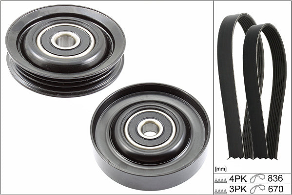 The timing belt system controls the combustion process and the the camshaft drive operation, which opens and closes the valves at the right time. To do this consistently requires accurate tensioning throughout the whole timing belt route, so that all tensioner and deflection pulleys operate in perfect synchronisation. The requirements placed on drive components has continuously increased in the last few years. Higher loads in the engine compartment combined with a longer life expectancy means that garages have to replace all of the belt drive system components at the same time, in line with the recommended change point specified by the vehicle manufacturer.As a technical partner and supplier of complete drive systems to the world's leading vehicle producers, INA offers the widest range of OE content Timing Belt KITs available to the UK aftermarket.INA KITs also contain everything needed for a professional belt system service, right down to the last nut, bolt and washer. If the application features a timing belt driven water pump, INA also offers a comprehensive range of Timing Belt KIT+ Water Pump references to suit.