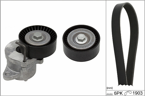 The timing belt system controls the combustion process and the the camshaft drive operation, which opens and closes the valves at the right time. To do this consistently requires accurate tensioning throughout the whole timing belt route, so that all tensioner and deflection pulleys operate in perfect synchronisation. The requirements placed on drive components has continuously increased in the last few years. Higher loads in the engine compartment combined with a longer life expectancy means that garages have to replace all of the belt drive system components at the same time, in line with the recommended change point specified by the vehicle manufacturer.As a technical partner and supplier of complete drive systems to the world's leading vehicle producers, INA offers the widest range of OE content Timing Belt KITs available to the UK aftermarket.INA KITs also contain everything needed for a professional belt system service, right down to the last nut, bolt and washer. If the application features a timing belt driven water pump, INA also offers a comprehensive range of Timing Belt KIT+ Water Pump references to suit.