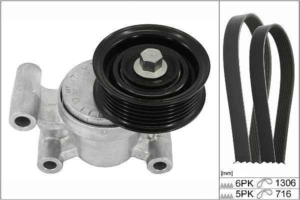The timing belt system controls the combustion process and the the camshaft drive operation, which opens and closes the valves at the right time. To do this consistently requires accurate tensioning throughout the whole timing belt route, so that all tensioner and deflection pulleys operate in perfect synchronisation. The requirements placed on drive components has continuously increased in the last few years. Higher loads in the engine compartment combined with a longer life expectancy means that garages have to replace all of the belt drive system components at the same time, in line with the recommended change point specified by the vehicle manufacturer.As a technical partner and supplier of complete drive systems to the world's leading vehicle producers, INA offers the widest range of OE content Timing Belt KITs available to the UK aftermarket.INA KITs also contain everything needed for a professional belt system service, right down to the last nut, bolt and washer. If the application features a timing belt driven water pump, INA also offers a comprehensive range of Timing Belt KIT+ Water Pump references to suit.