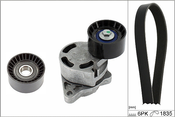 The timing belt system controls the combustion process and the the camshaft drive operation, which opens and closes the valves at the right time. To do this consistently requires accurate tensioning throughout the whole timing belt route, so that all tensioner and deflection pulleys operate in perfect synchronisation. The requirements placed on drive components has continuously increased in the last few years. Higher loads in the engine compartment combined with a longer life expectancy means that garages have to replace all of the belt drive system components at the same time, in line with the recommended change point specified by the vehicle manufacturer.As a technical partner and supplier of complete drive systems to the world's leading vehicle producers, INA offers the widest range of OE content Timing Belt KITs available to the UK aftermarket.INA KITs also contain everything needed for a professional belt system service, right down to the last nut, bolt and washer. If the application features a timing belt driven water pump, INA also offers a comprehensive range of Timing Belt KIT+ Water Pump references to suit.
