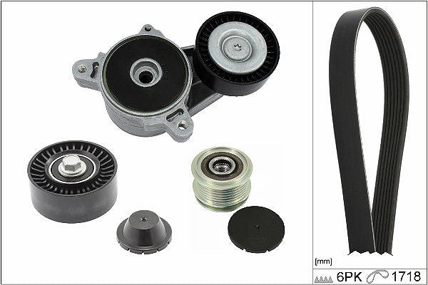 Driven Units - Driven unit: alternatorAddn Info - for vehicles with air conditioningLength 1 - 1718 mmNumber of ribs - 6Pulleys - with freewheel belt pulleyObserve service informationFollow installation instructions